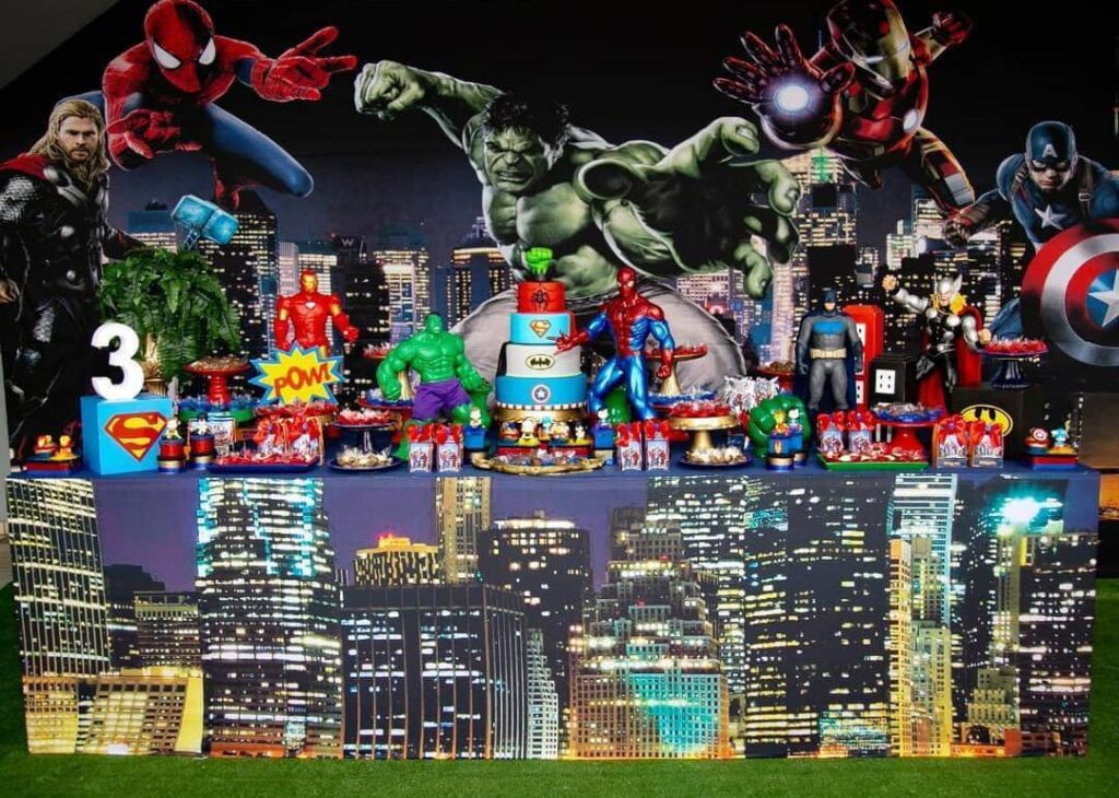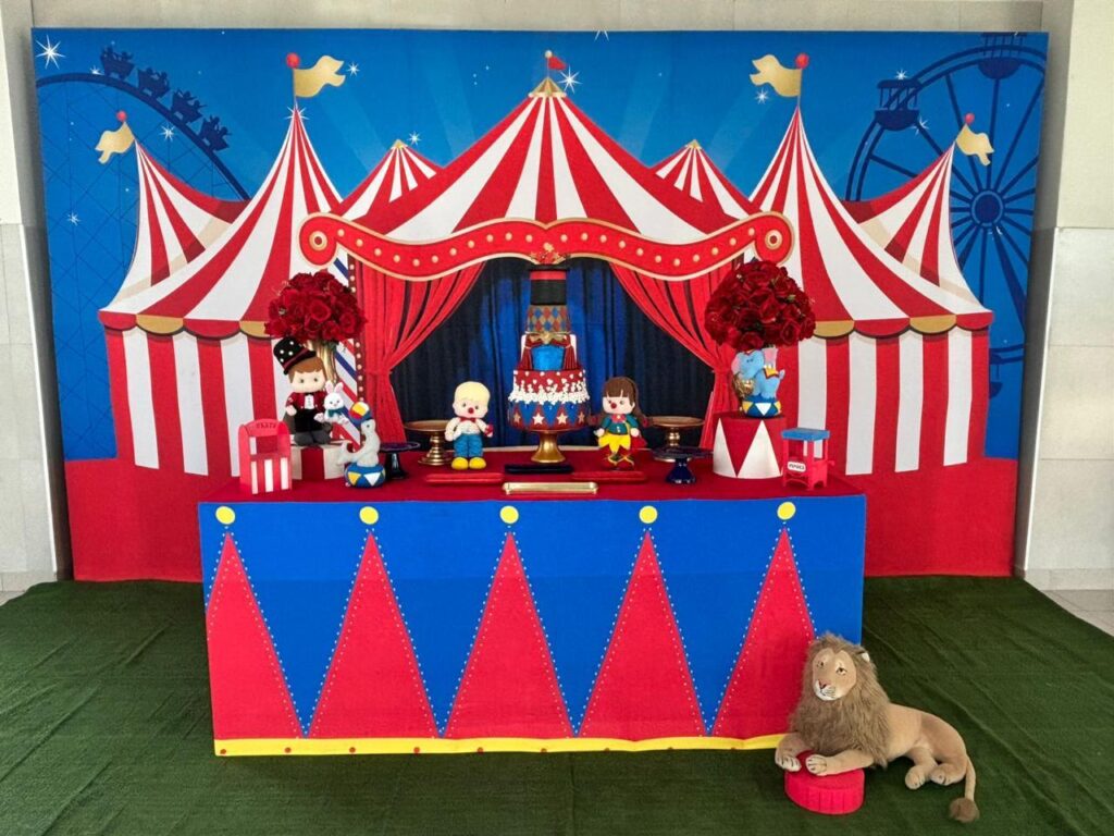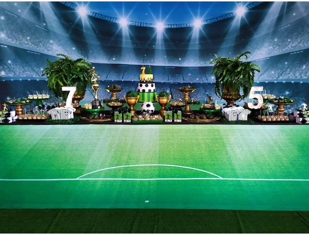 Kit ( 1 Painel retangular + 1 mesa balcão 2 metros ou mesa e aparador + 25 peças + 1 Tapete off ou verde ou grama + 1 escada de lembranças + 1 caixa de presente )